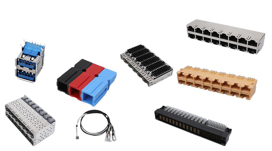網(wǎng)絡(luò)連接器 (集成RJ45系列和普通RJ45系列)、高速連接器(SFP/QSFP/DSFP/CFP系列)、電源連接器、高速DAC和背板高速線纜組件、BTB連接器、網(wǎng)絡(luò)變壓器、RJ11連接器系列、USB&TYPE-C系列、精密五金件等。公司產(chǎn)品廣泛應(yīng)用于包括“5G/6G”在內(nèi)的網(wǎng)絡(luò)、通訊等行業(yè),并致力于滿足新能源汽車(chē)、高端裝備、智能顯示、軌道交通、機(jī)器人等高精尖終端領(lǐng)域?qū)B接器市場(chǎng)的需求。